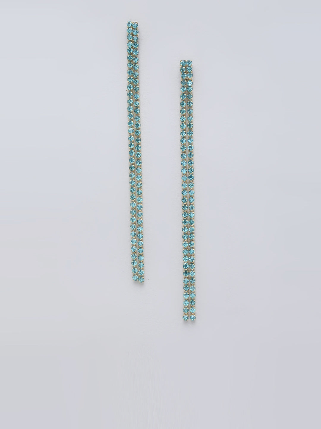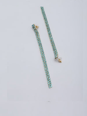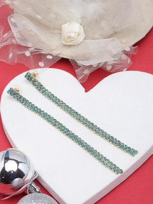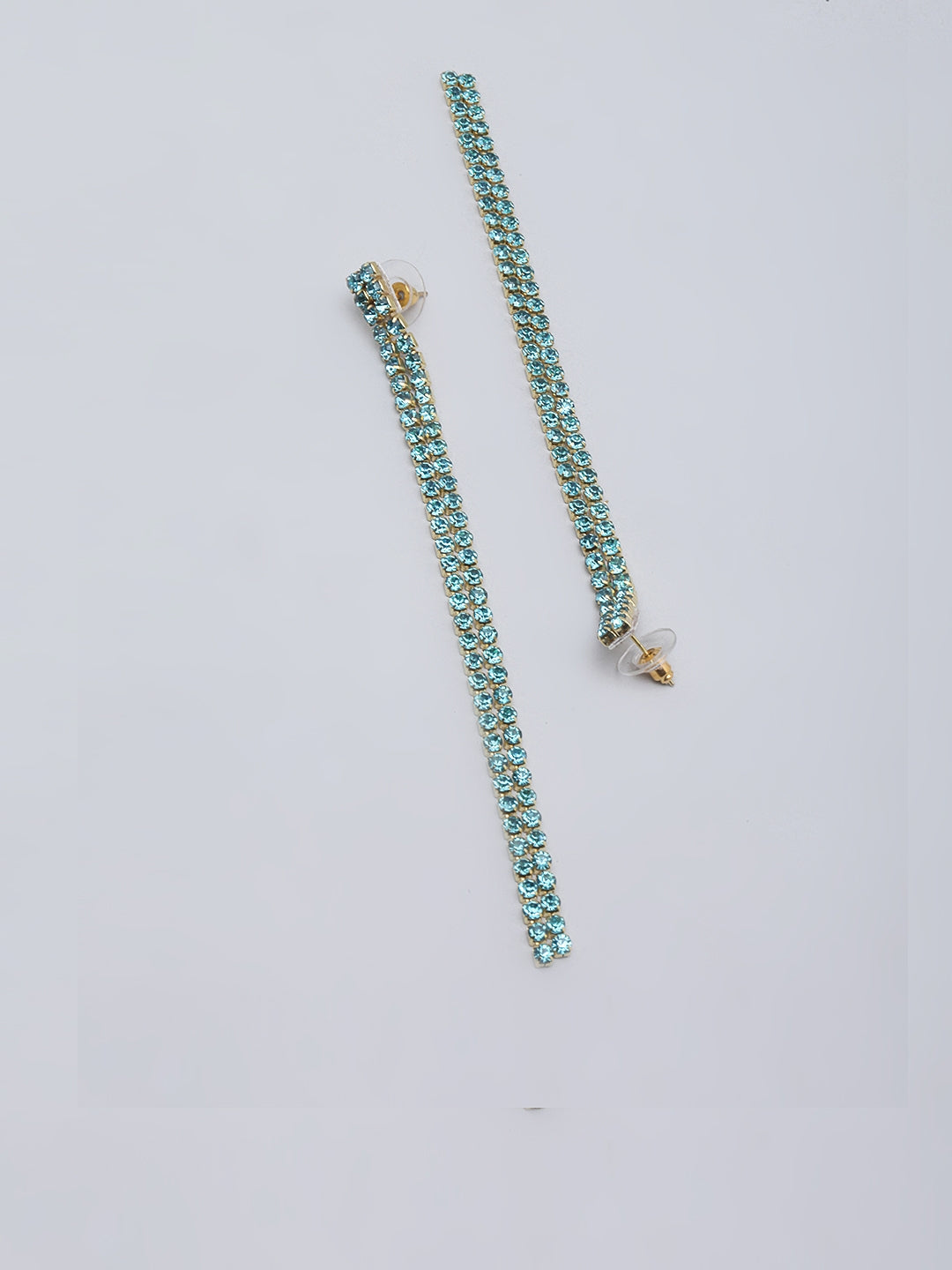 Gold-Plated Blue Rhinestone Studded Drop Earrings