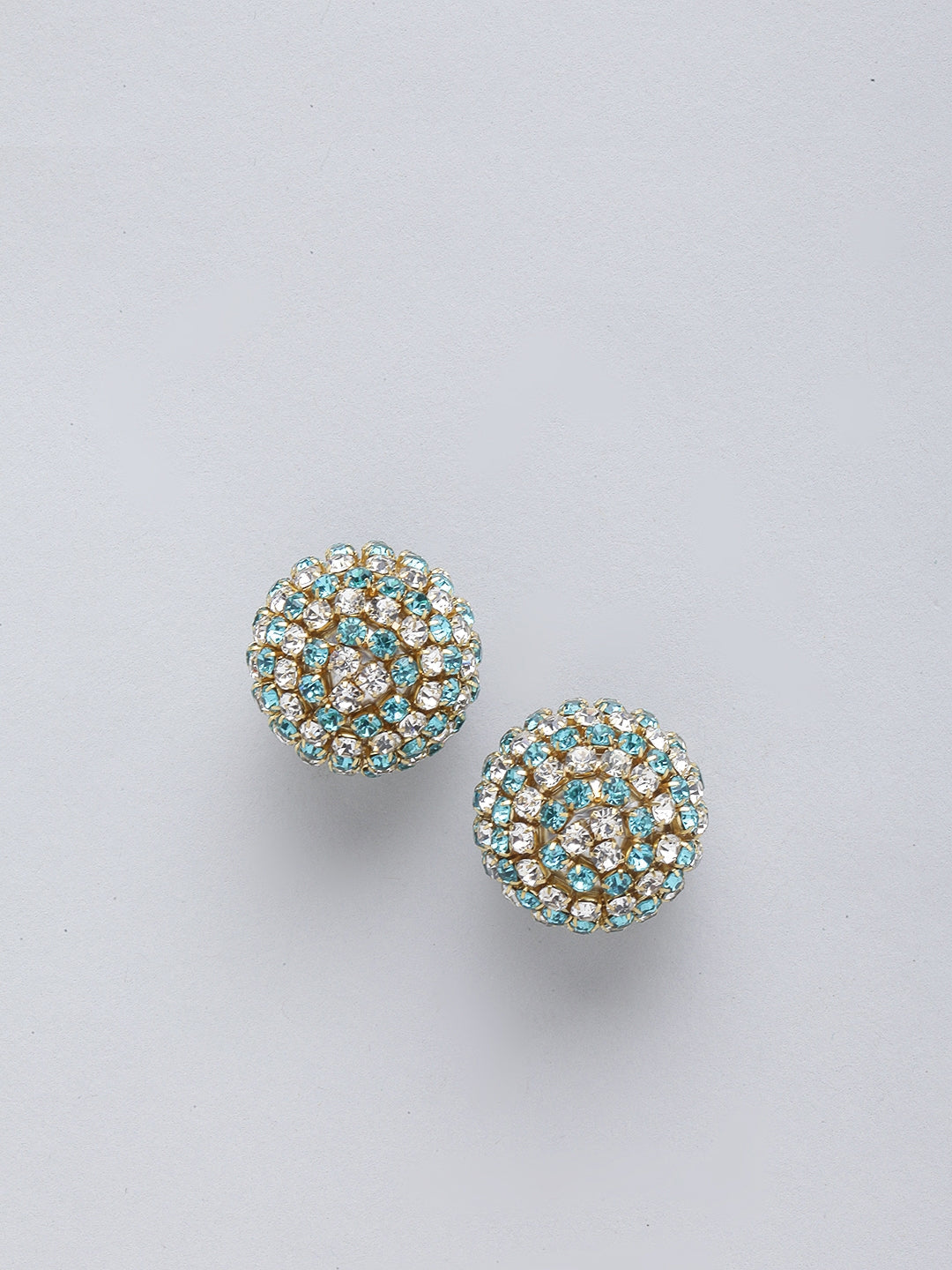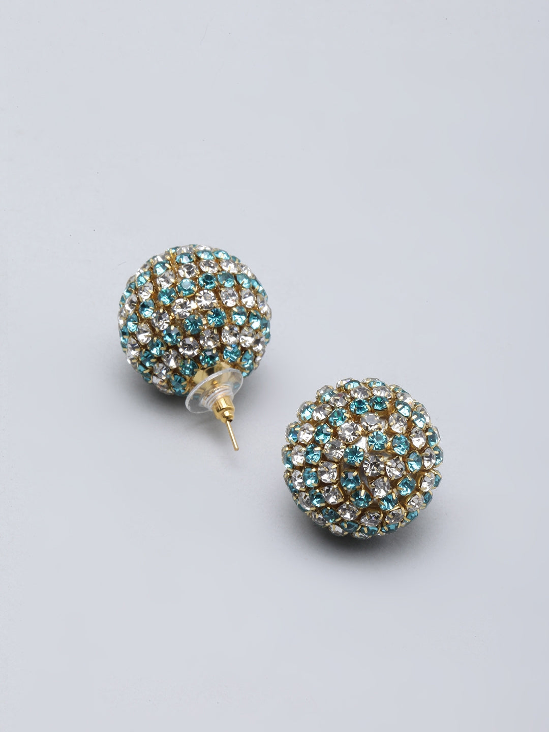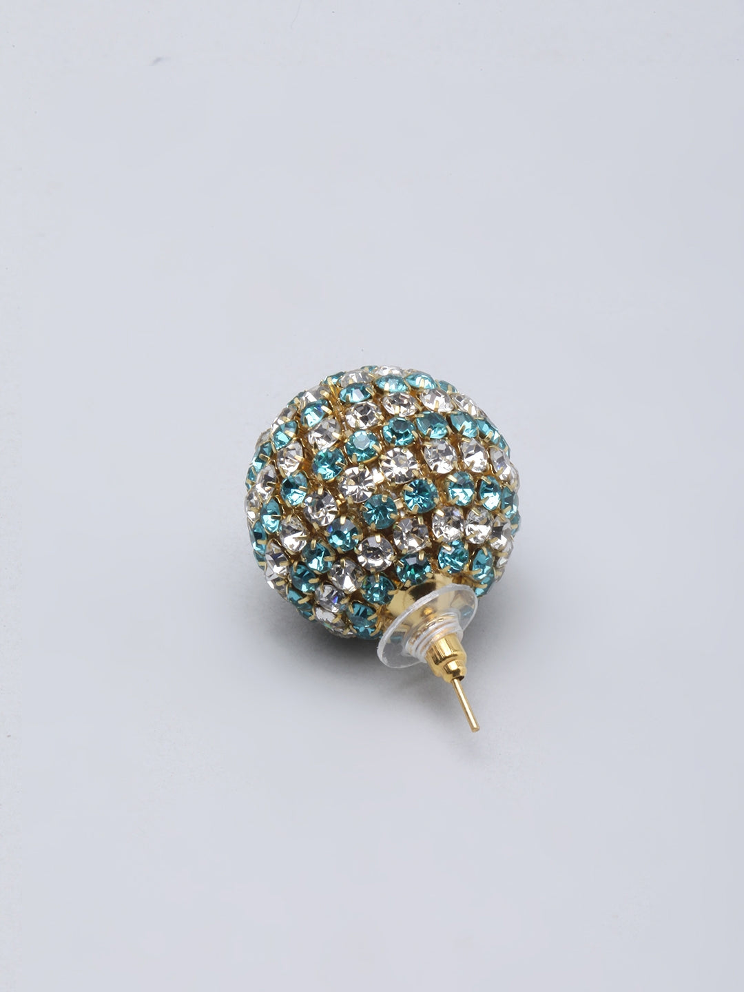 Gold-Plated Blue & Transparent Circular Rhinestone Studs