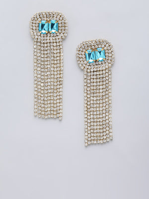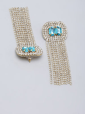 Gold-Plated Blue & Transparent Rhinestone Studded Drop Earrings
