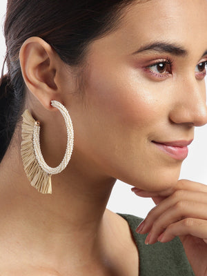 Gold-Plated Brown & White Beaded Drop Earrings