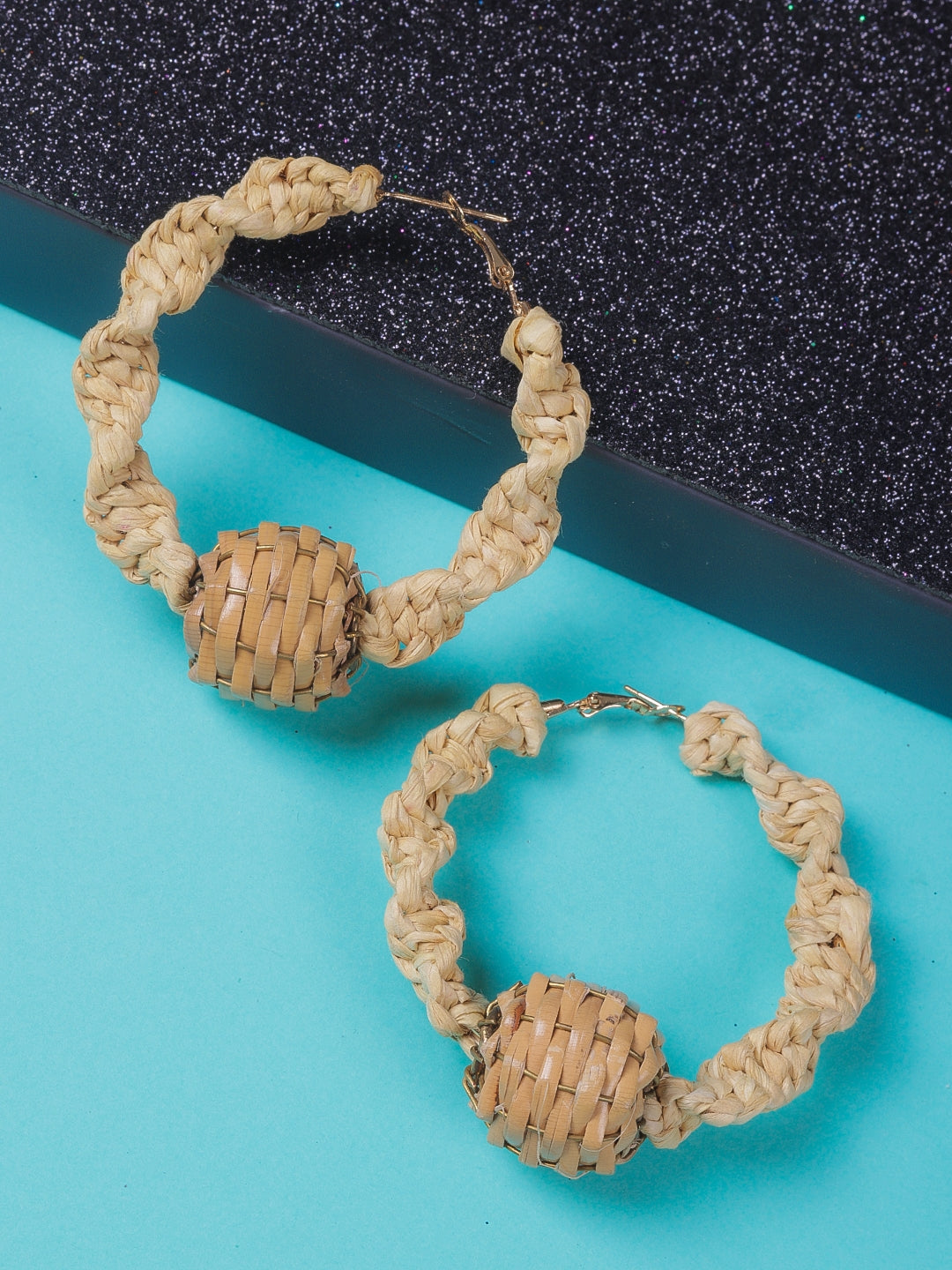 Gold-Plated Brown & Yellow Ethnic Brass Artificial Beads Contemporary Drop Earrings