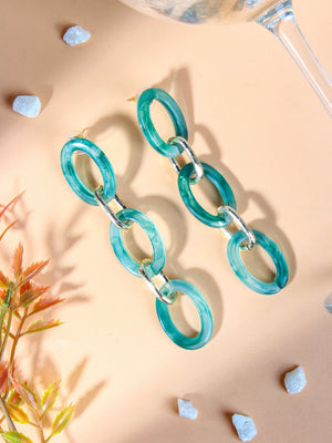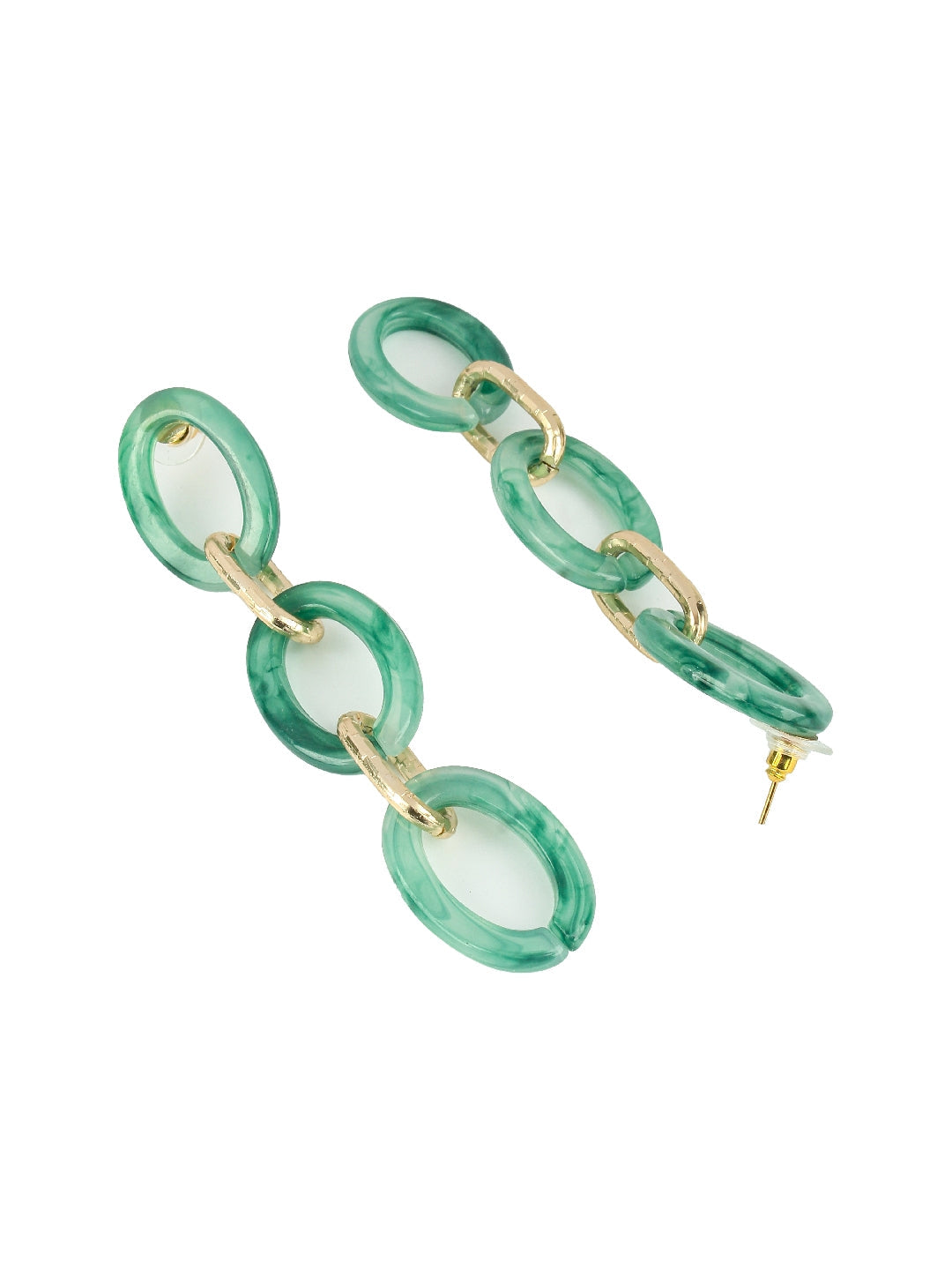 Gold-Plated Gold & Green Brass Handcrafted Contemporary Drop Earrings