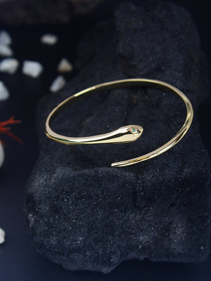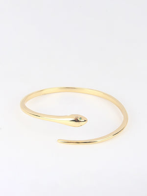 Gold-Plated Gold & Green Cubic Zirconia Studded Bangle-Style Brass Slip-On Bracelet