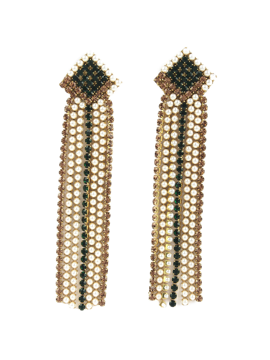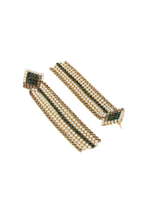 Gold-Plated Gold & Green Fabric Handcrafted Contemporary Drop Earrings