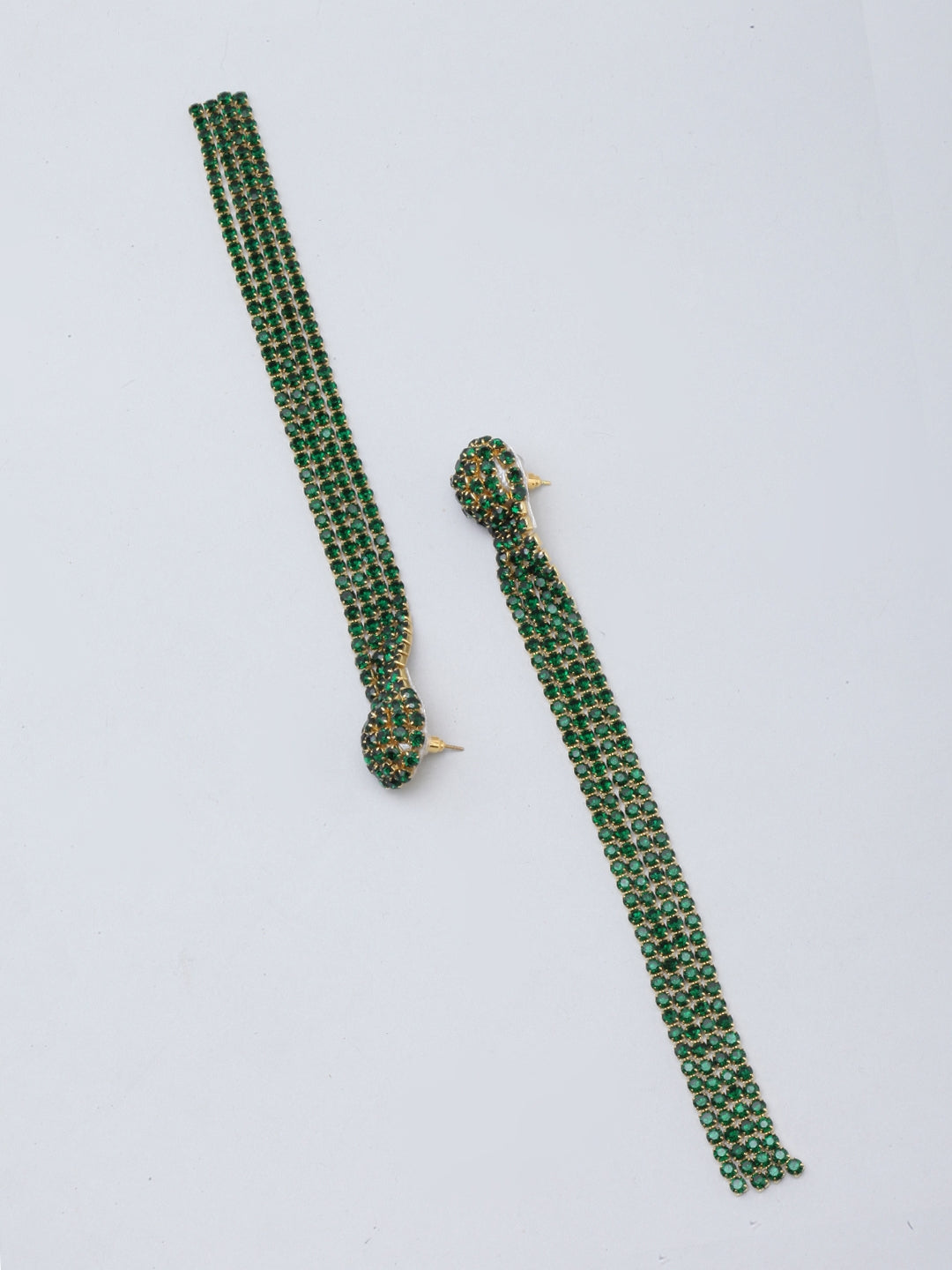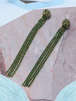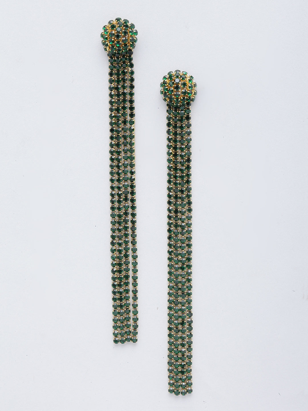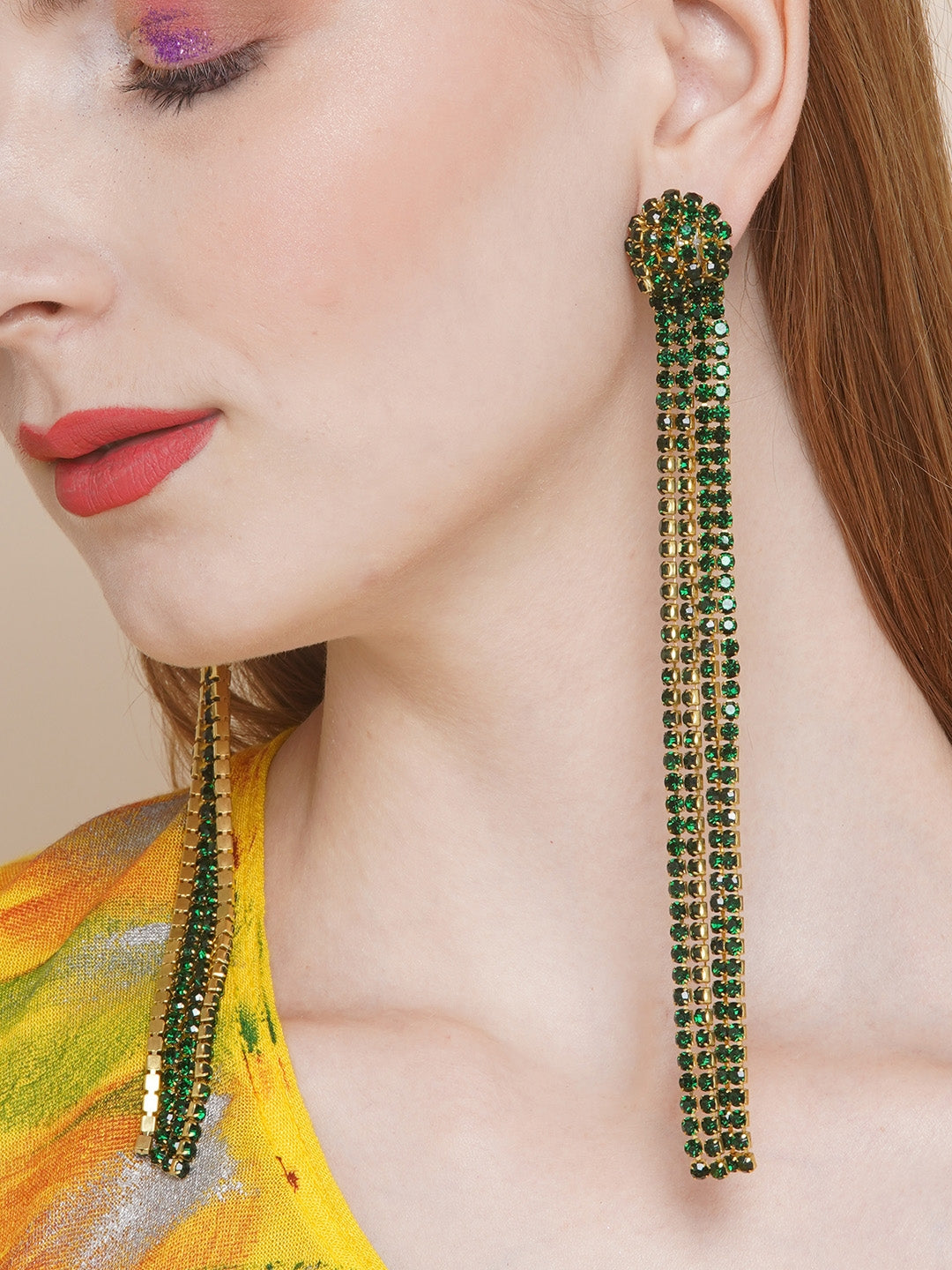 Gold-Plated Gold & Green Rhinestone Metallic Chain Tassels