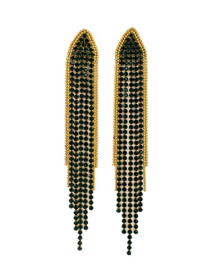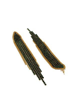 Gold-Plated Gold & Green Rhinestone Studded Contemporary Brass Drop Earrings