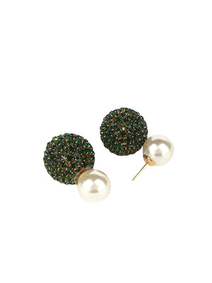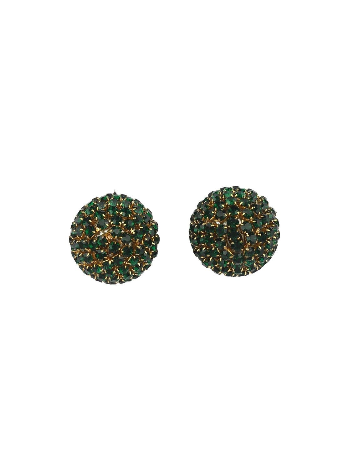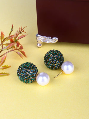 Gold-Plated Gold & Green Rhinestone Studded Contemporary Brass Drop Earrings