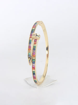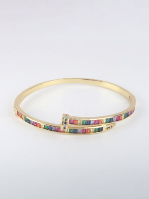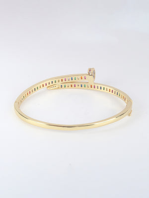 Gold-Plated Gold & Multi Cubic Zirconia Studded Bangle-Style Brass Slip-On Bracelet