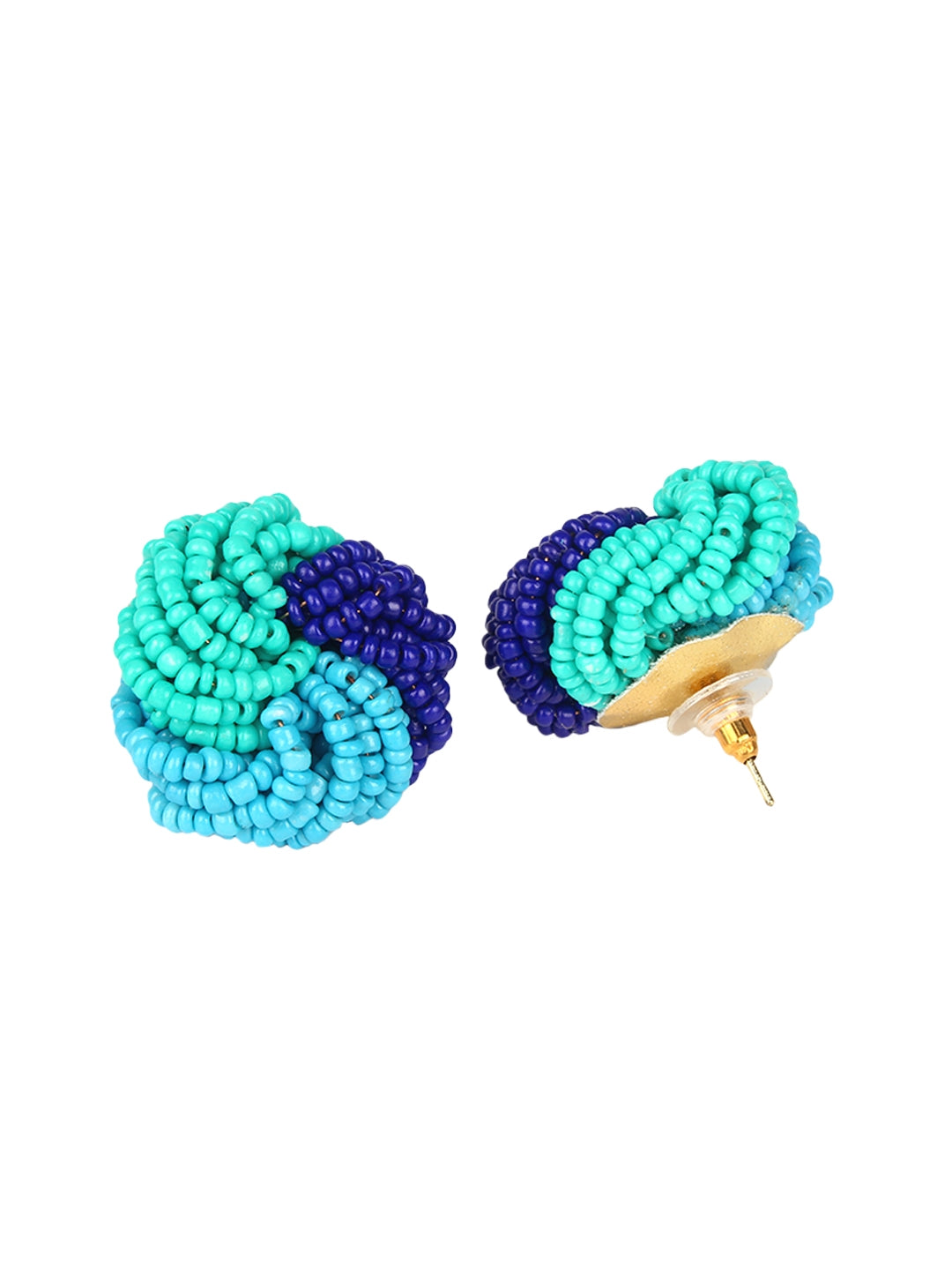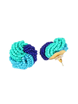 Gold-Plated Gold & Navy Blue Fabric Handcrafted Contemporary Drop Earrings
