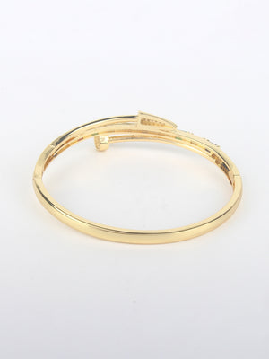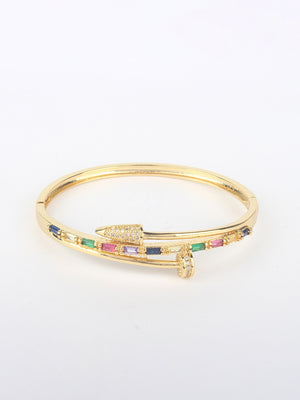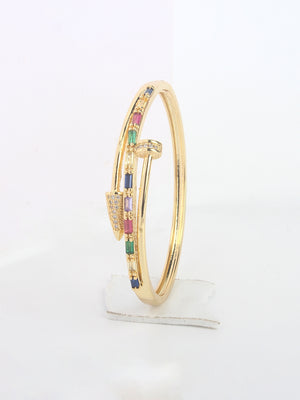 Gold-Plated Gold & Pink Cubic Zirconia Studded Bangle-Style Brass Slip-On Bracelet