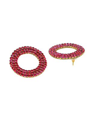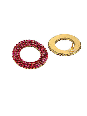 Gold-Plated Gold & Red Rhinestone Studded Contemporary Brass Studs