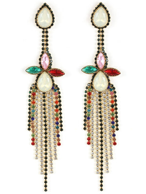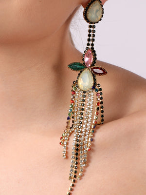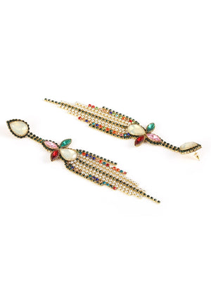 Gold-Plated Gold Rhinestone Studded Brass Handcrafted Drop Earrings