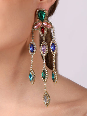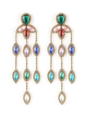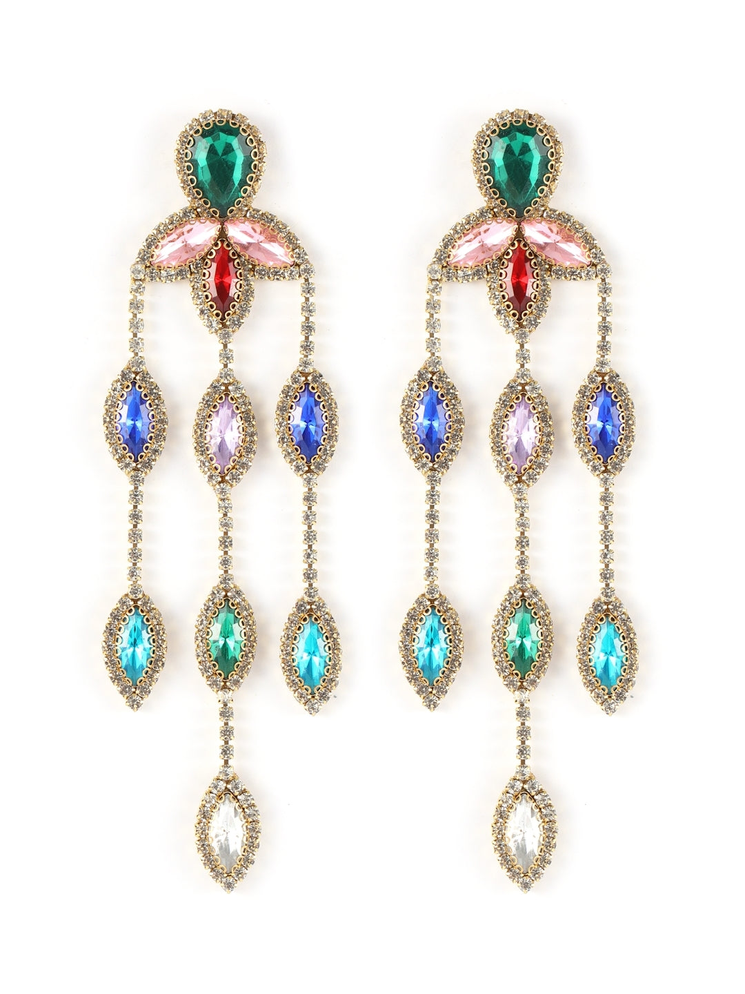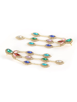 Gold-Plated Gold Rhinestone Studded Brass Handcrafted Drop Earrings