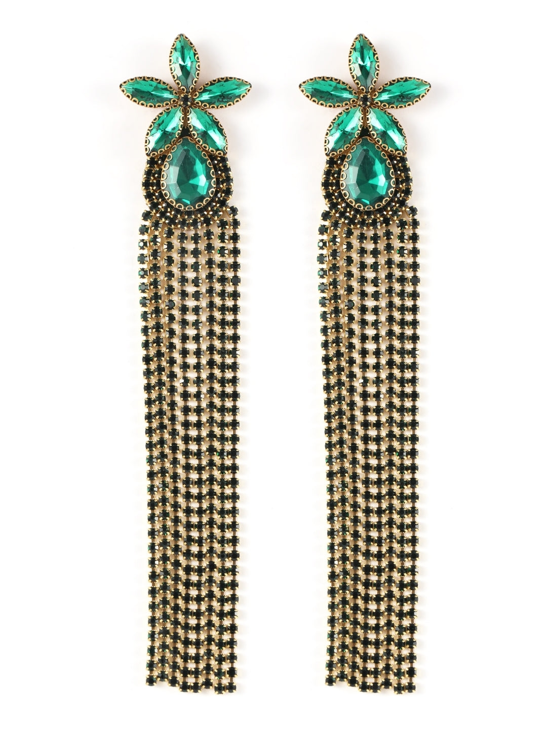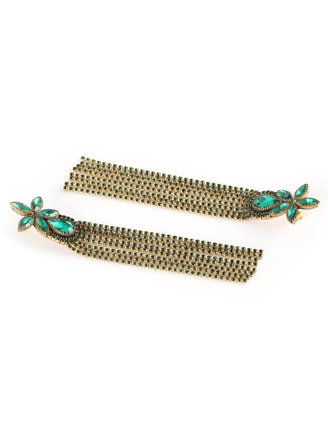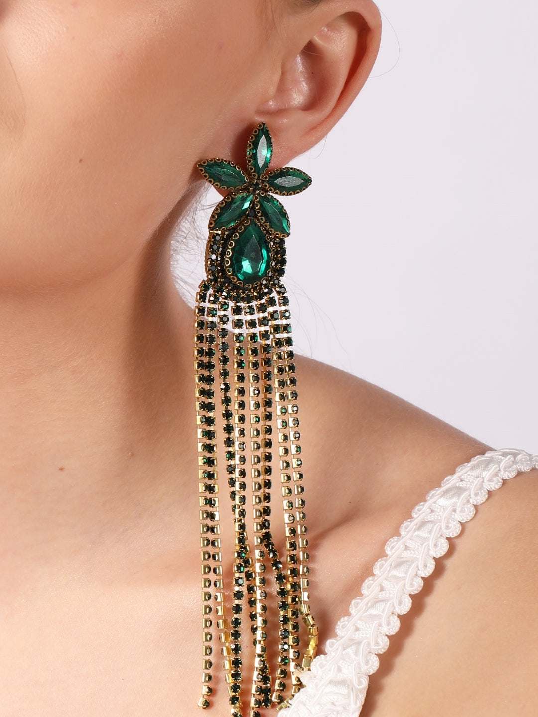 Gold-Plated Gold Rhinestone Studded Brass Handcrafted Drop Earrings