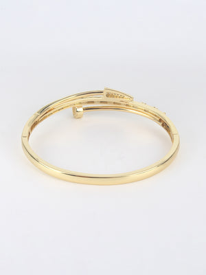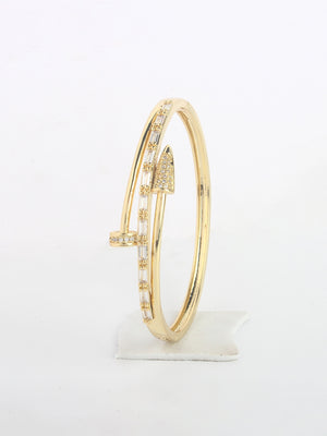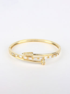 Gold-Plated Gold & Transparent Cubic Zirconia Studded Bangle-Style Brass Slip-On Bracelet
