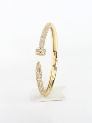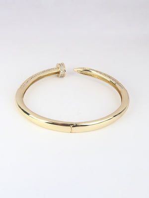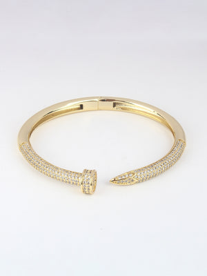 Gold-Plated Gold & Transparent Cubic Zirconia Studded Bangle-Style Brass Slip-On Bracelet