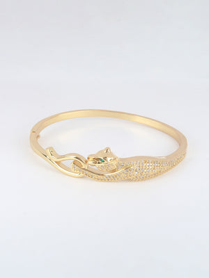 Gold-Plated Gold & Transparent Cubic Zirconia Studded Bangle-Style Brass Slip-On Bracelet