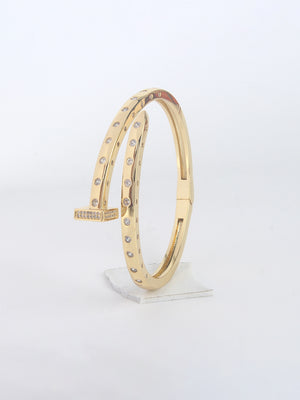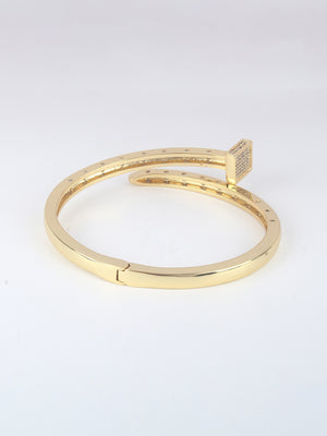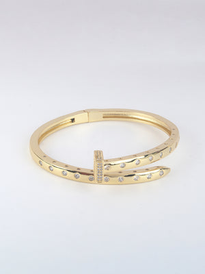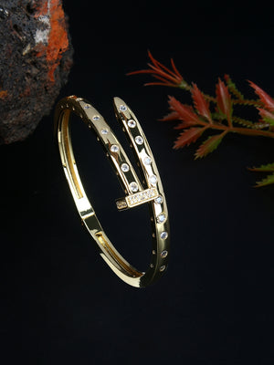 Gold-Plated Gold & Transparent Cubic Zirconia Studded Bangle-Style Brass Slip-On Bracelet