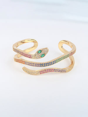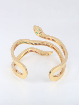 Gold-Plated Gold & Transparent Cubic Zirconia Studded Bangle-Style Brass Slip-On Bracelet