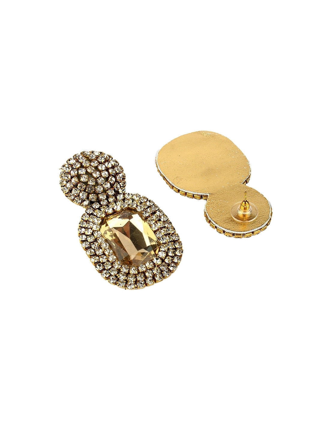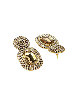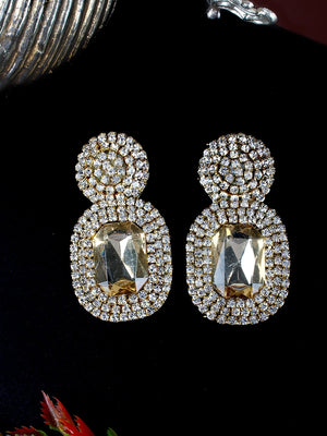 Gold-Plated Gold & Transparent Rhinestone Studded Contemporary Brass Studs