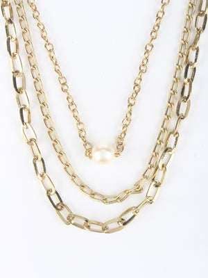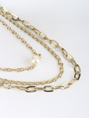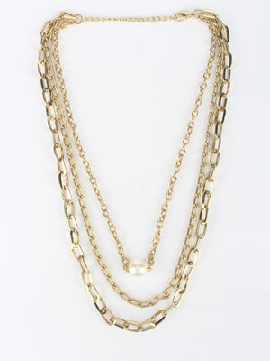 Gold-Plated Gold & White Brass Artificial Beads Studded Minimal Necklace