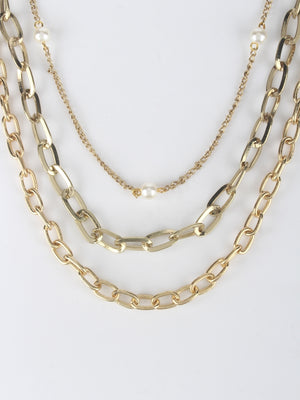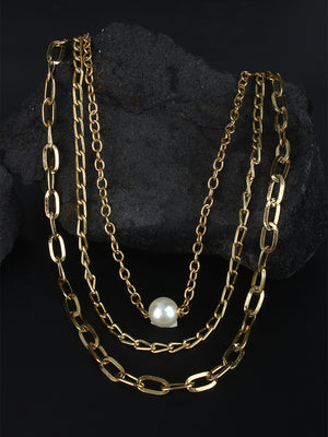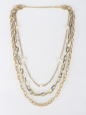 Gold-Plated Gold & White Brass Artificial Beads Studded Minimal Necklace