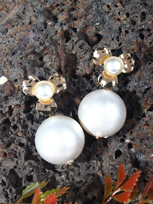 Gold-Plated Gold & White Brass Handcrafted Contemporary Drop Earrings