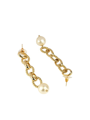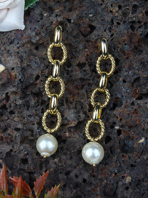 Gold-Plated Gold & White Brass Handcrafted Contemporary Drop Earrings