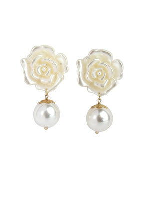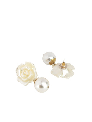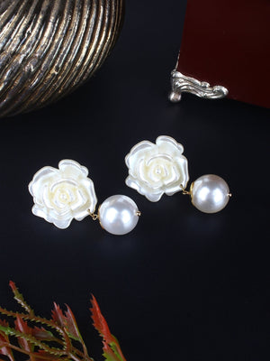 Gold-Plated Gold & White Rhinestone Studded Contemporary Brass Drop Earrings