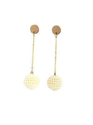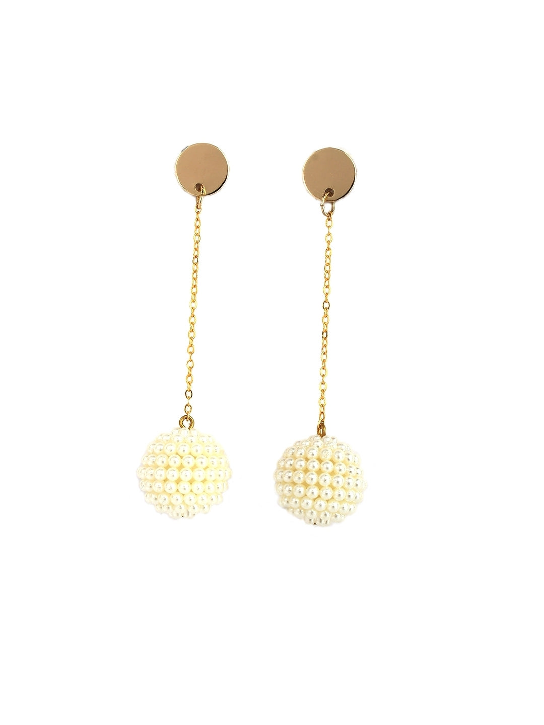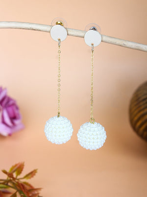 Gold-Plated Gold & White Rhinestone Studded Contemporary Brass Drop Earrings