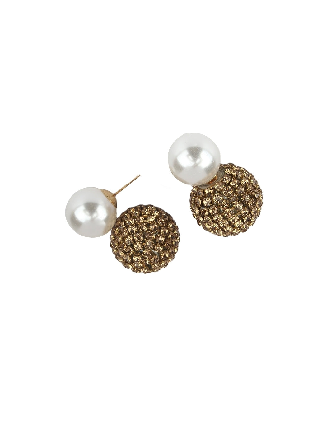 Gold-Plated Gold & White Rhinestone Studded Contemporary Brass Studs