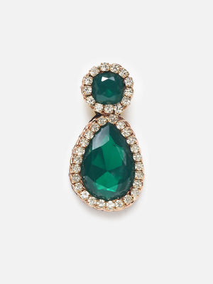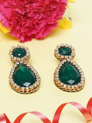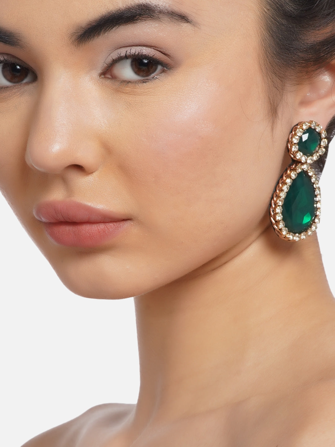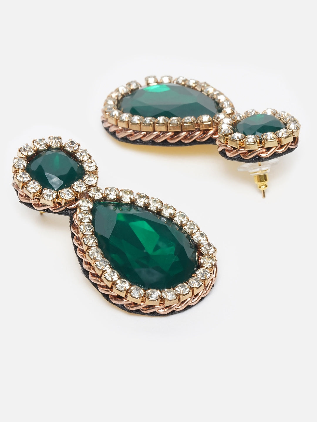 Gold-Plated Green & Transparent Fabric Handcrafted Teardrop Shaped Drop Earrings
