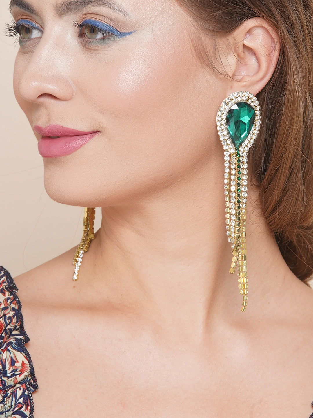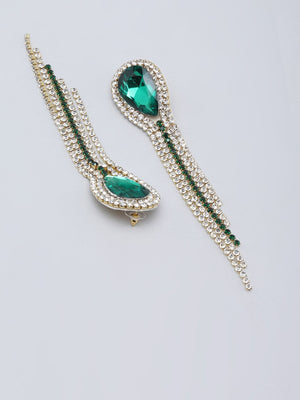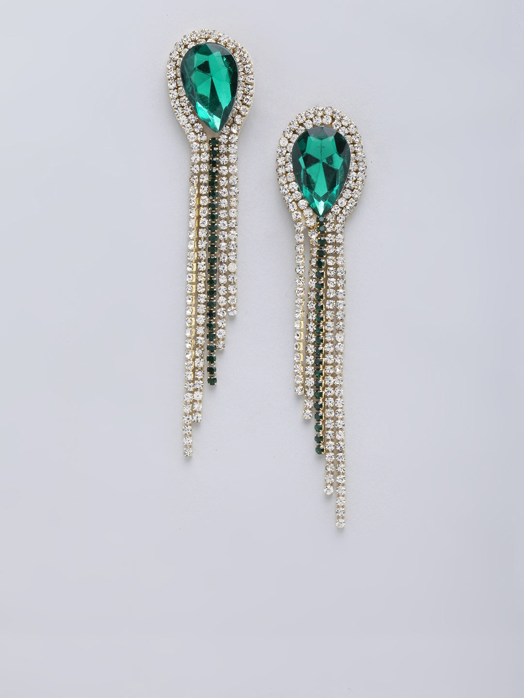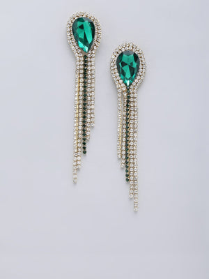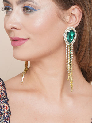 Gold-Plated Green & Transparent Rhinestone Studded Drop Earrings