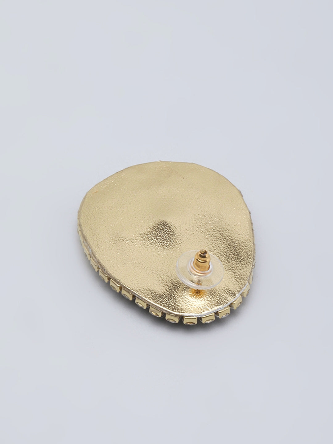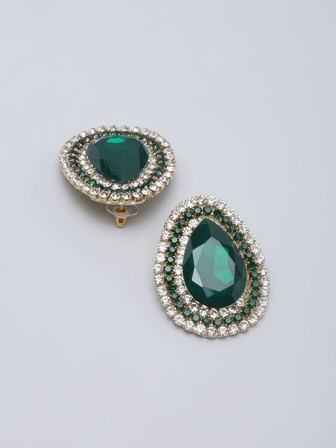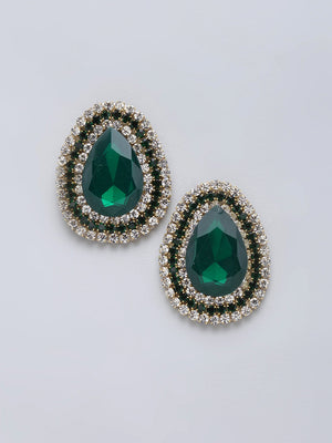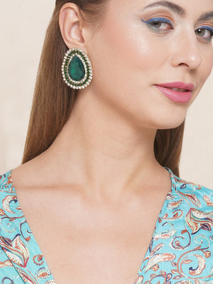 Gold-Plated Green & Transparent Rhinestone Studded Drop Shaped Studs