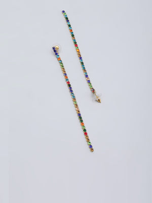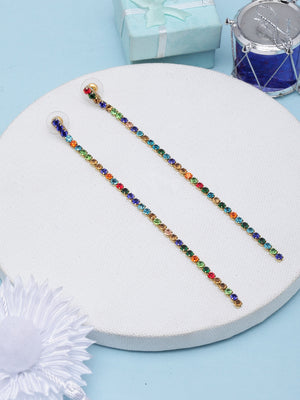 Gold-Plated Multi-Colored Rhinestone Studded Drop Earrings
