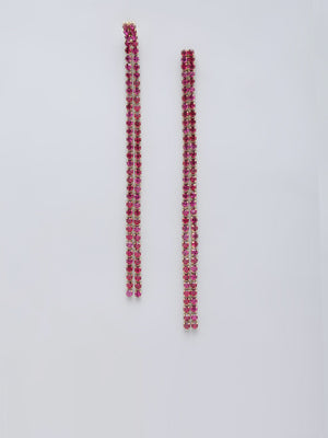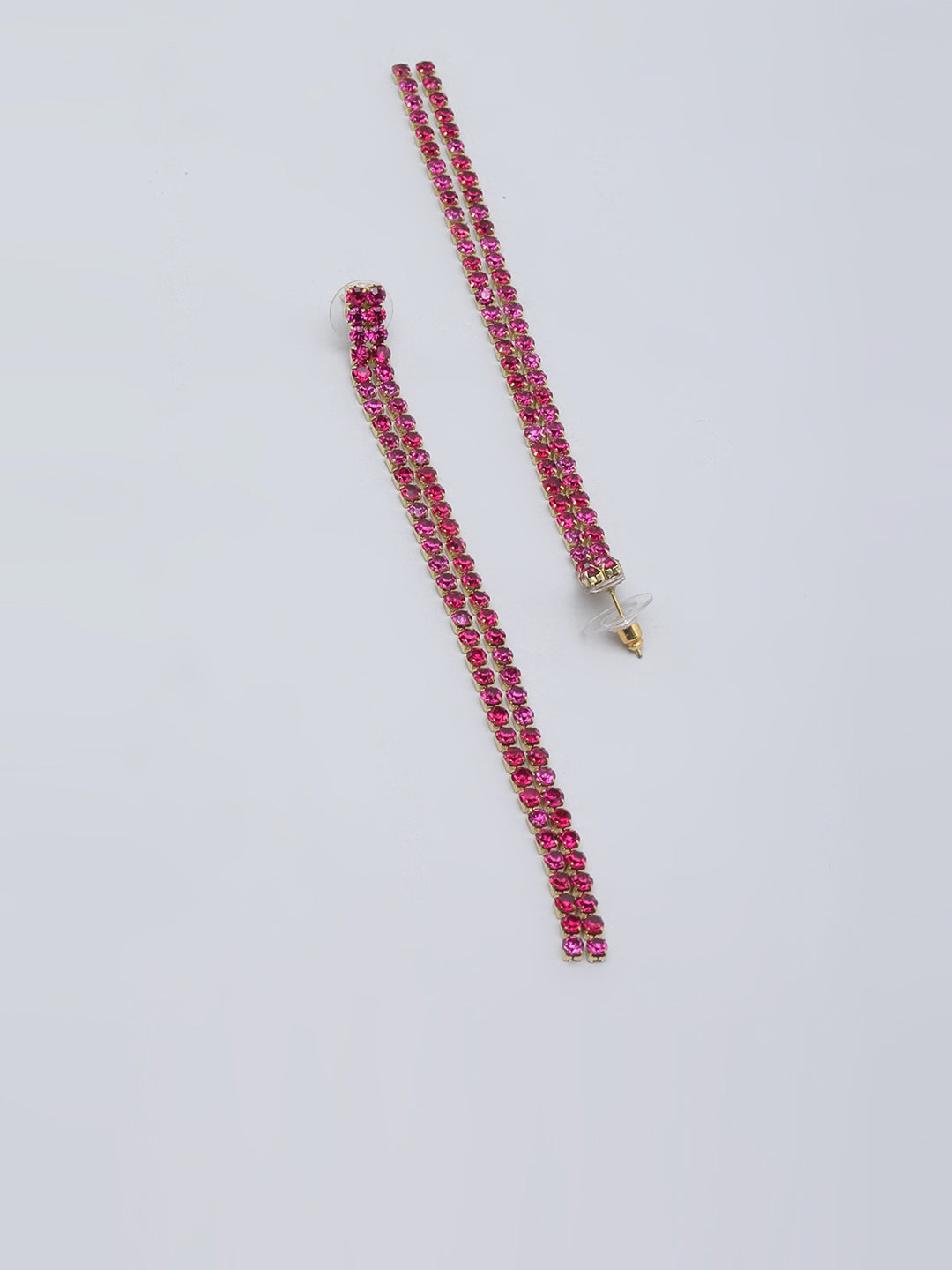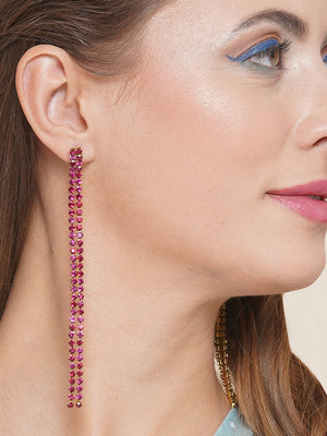 Gold-Plated Pink Rhinestone Studded Drop Earrings