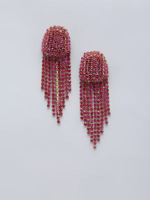 Gold-Plated Pink Rhinestone Studded Drop Earrings