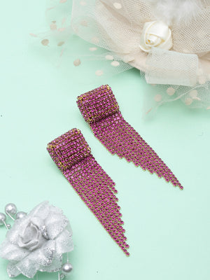 Gold-Plated Pink Rhinestone Studded Drop Earrings