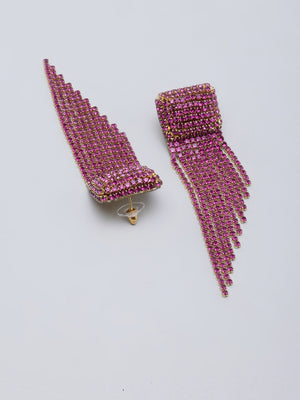 Introducing our exquisite Gold-Plated Pink Rhinestone Studded Drop Earrings, a perfect blend of elegance and sophistication. Crafted with precision, these earrings feature a stunning gold-plated finish that adds a touch of glamour to any outfit.