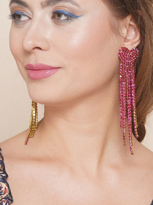 Gold-Plated Pink Rhinestone Studded Drop Earrings