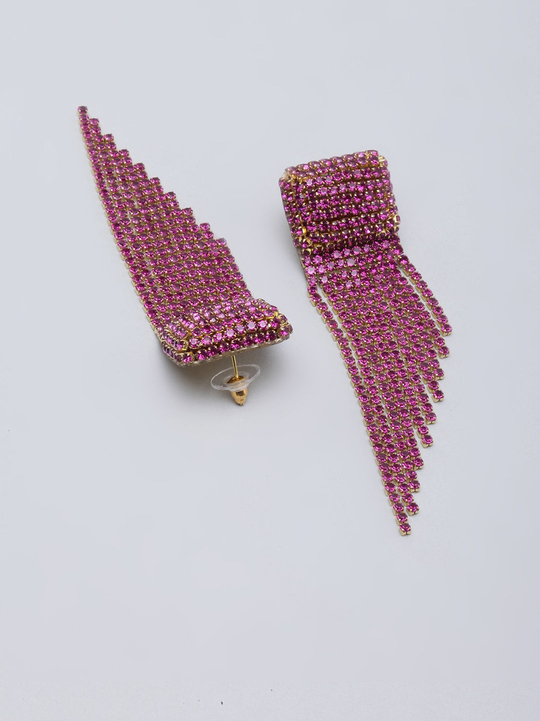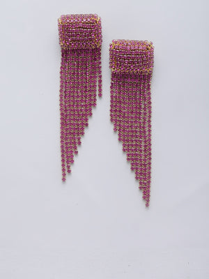 Gold-Plated Pink Rhinestone Studded Drop Earrings