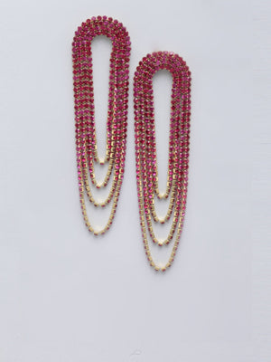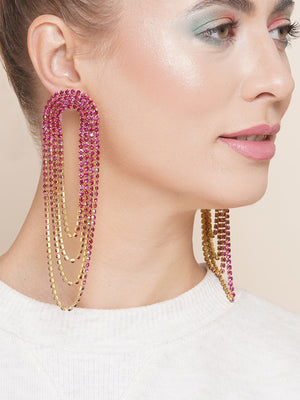 Gold-Plated Pink Rhinestone Studded Drop Earrings