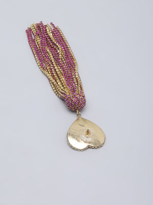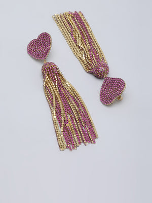 Gold-Plated Pink Rhinestone Studded Heart Shaped Metallic Tassels