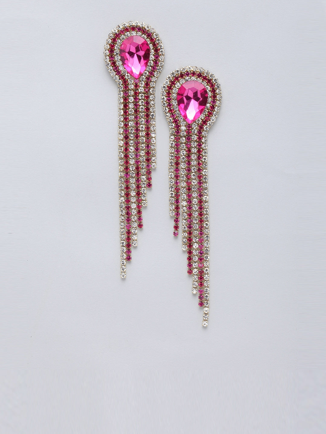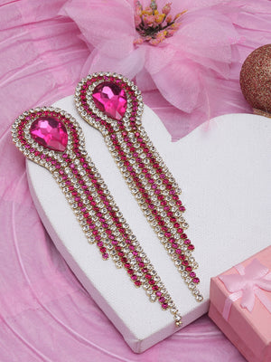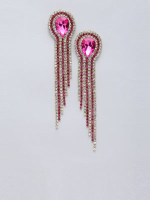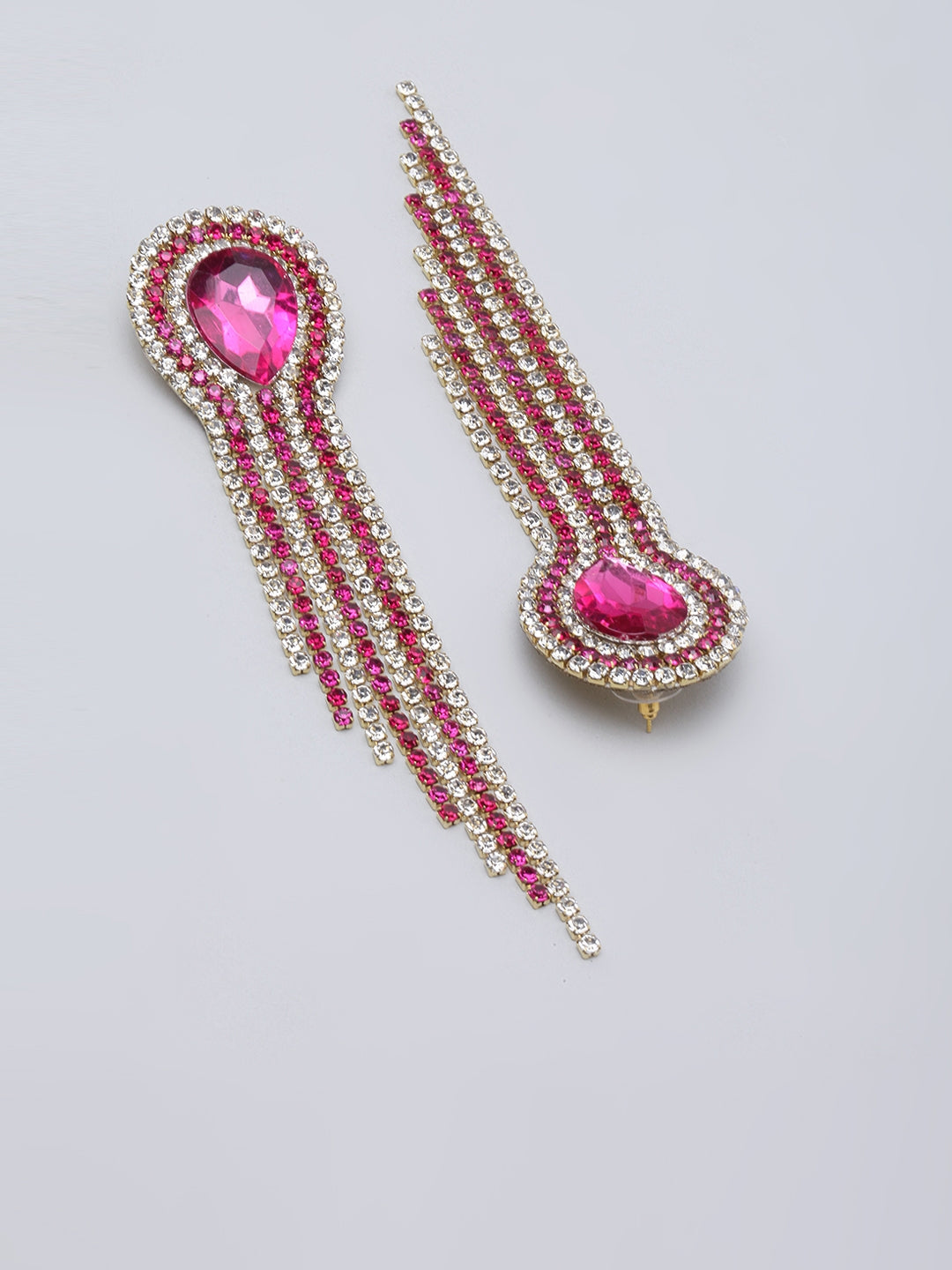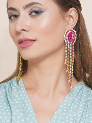 Gold-Plated Pink & Transparent Rhinestone Studded Earrings