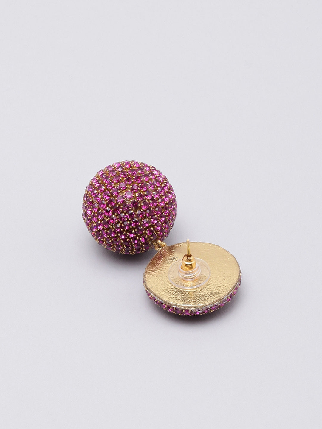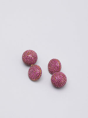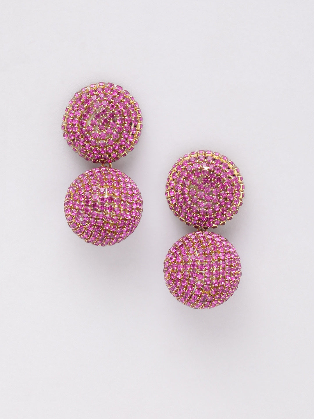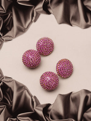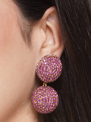 Gold-Plated Purple Circular Rhinestone Studded Drop Earrings