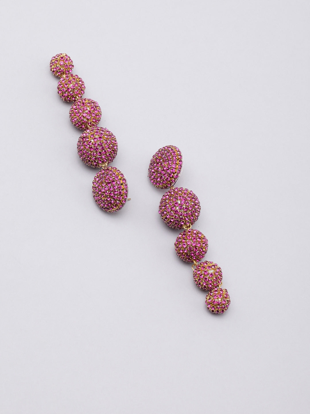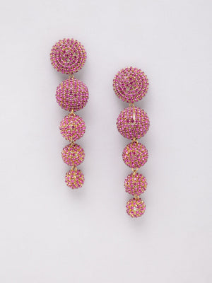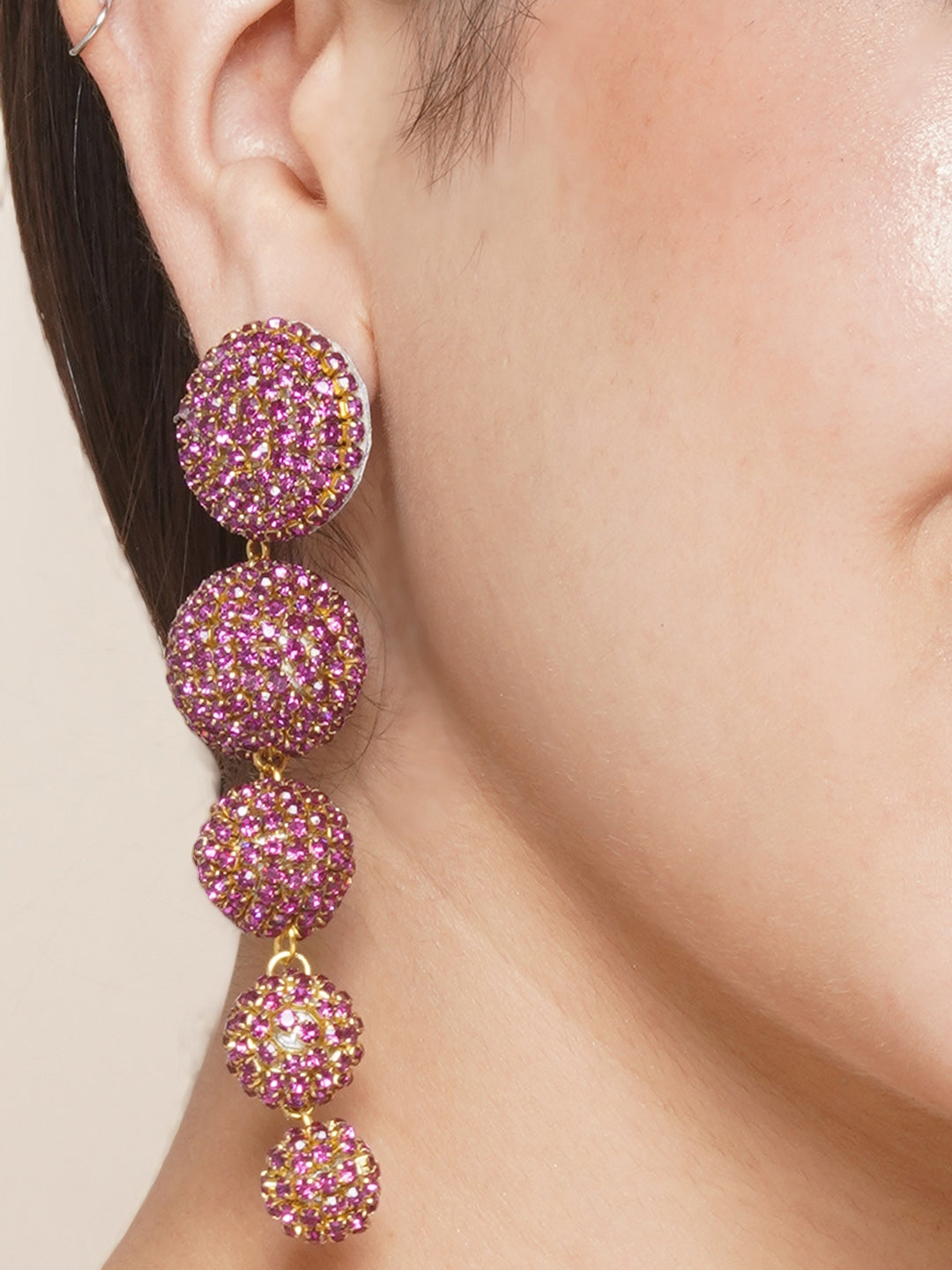 Gold-Plated Purple Circular Rhinestone Studded Drop Earrings
