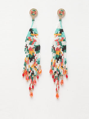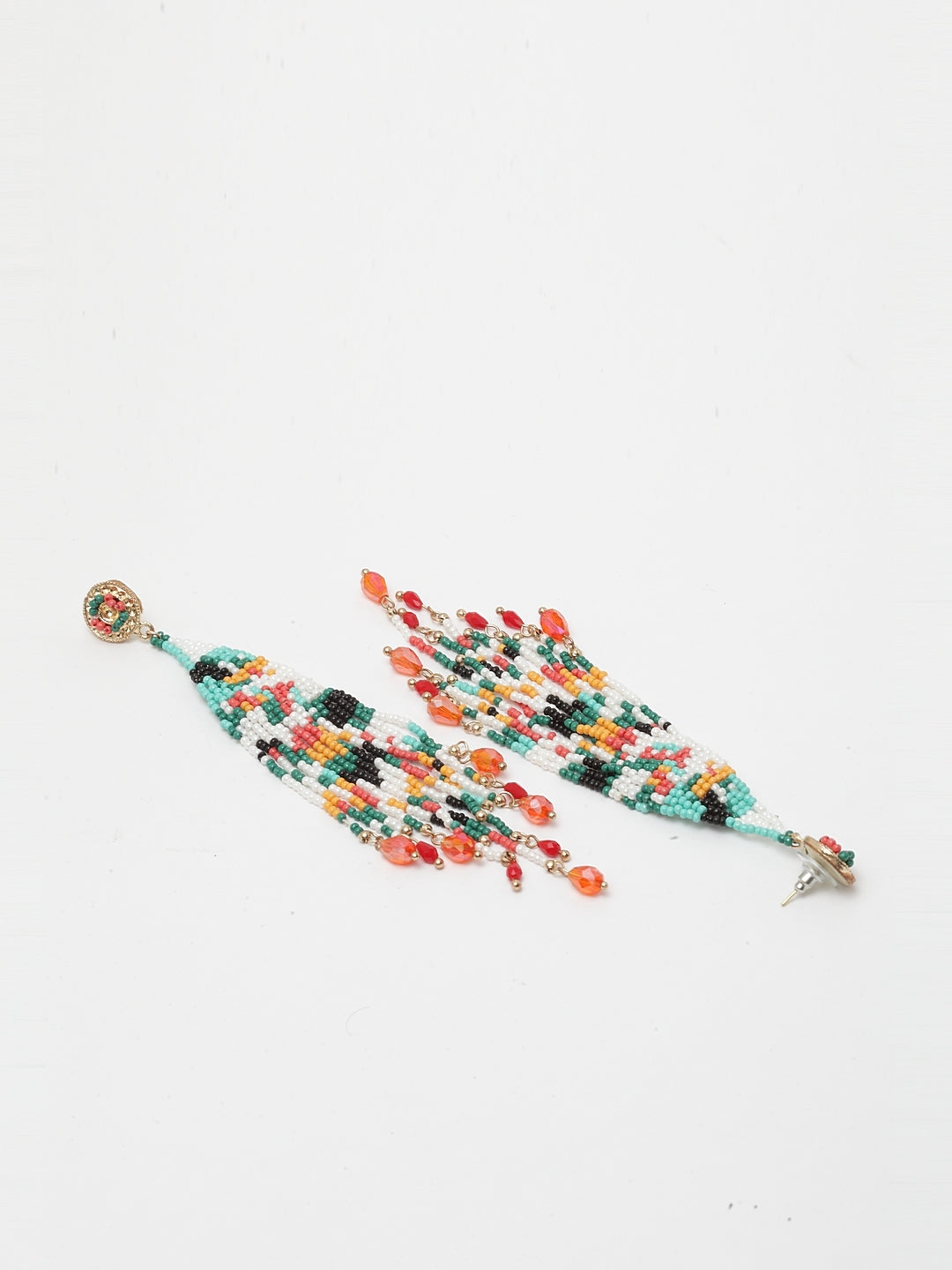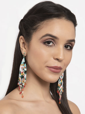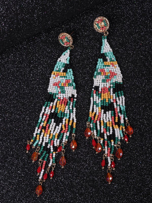 Gold-Plated Red & Blue Ethnic Brass Artificial Beads Contemporary Drop Earrings