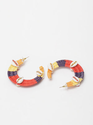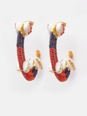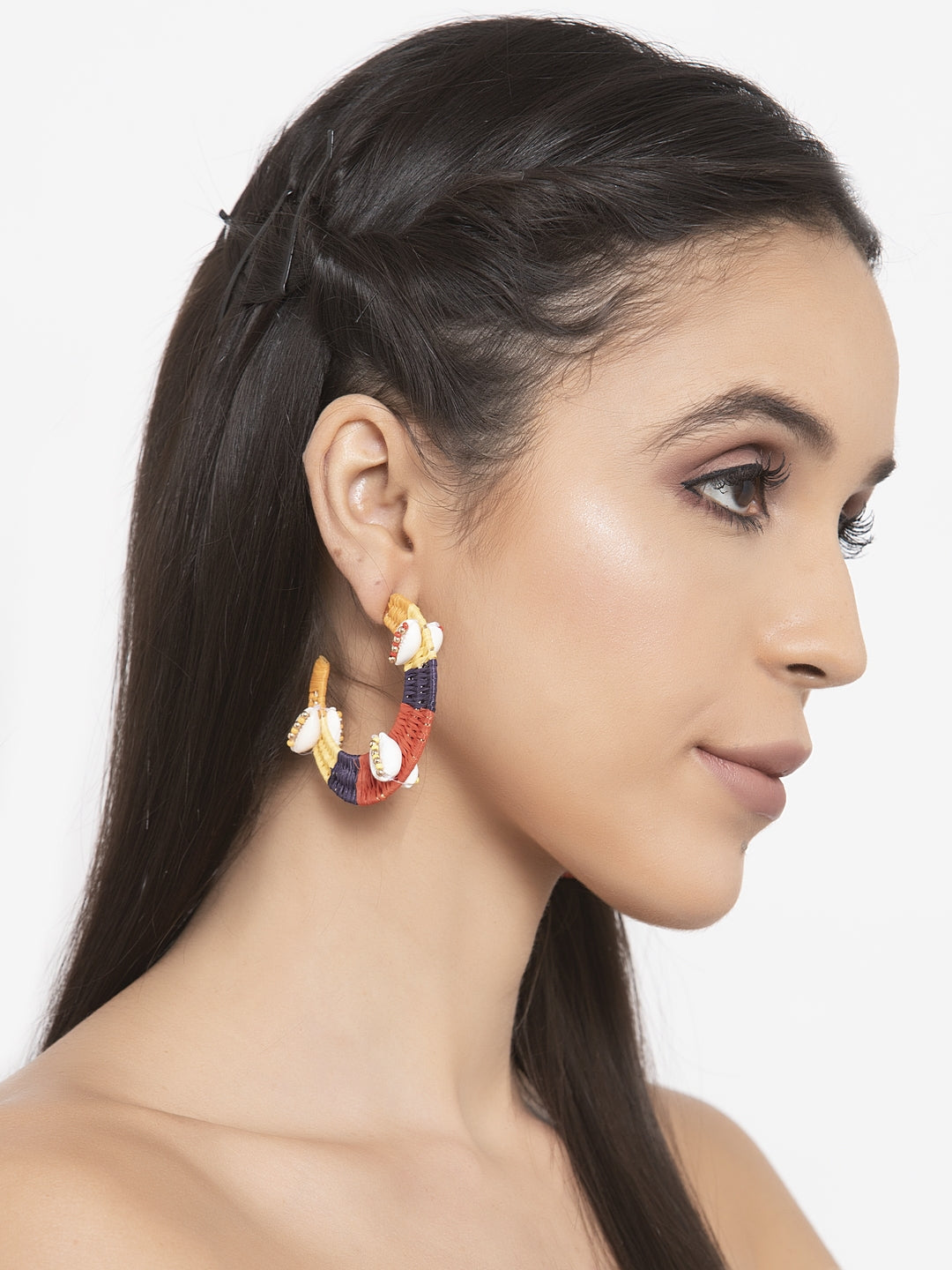 Gold-Plated Red & Navy Blue Ethnic Brass Artificial Beads Contemporary Drop Earrings