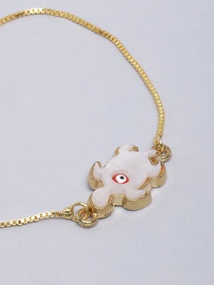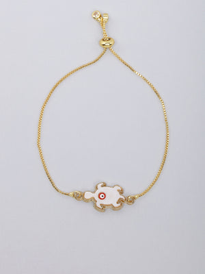 Gold-Plated White Enamelled Turtle Shaped Bracelet