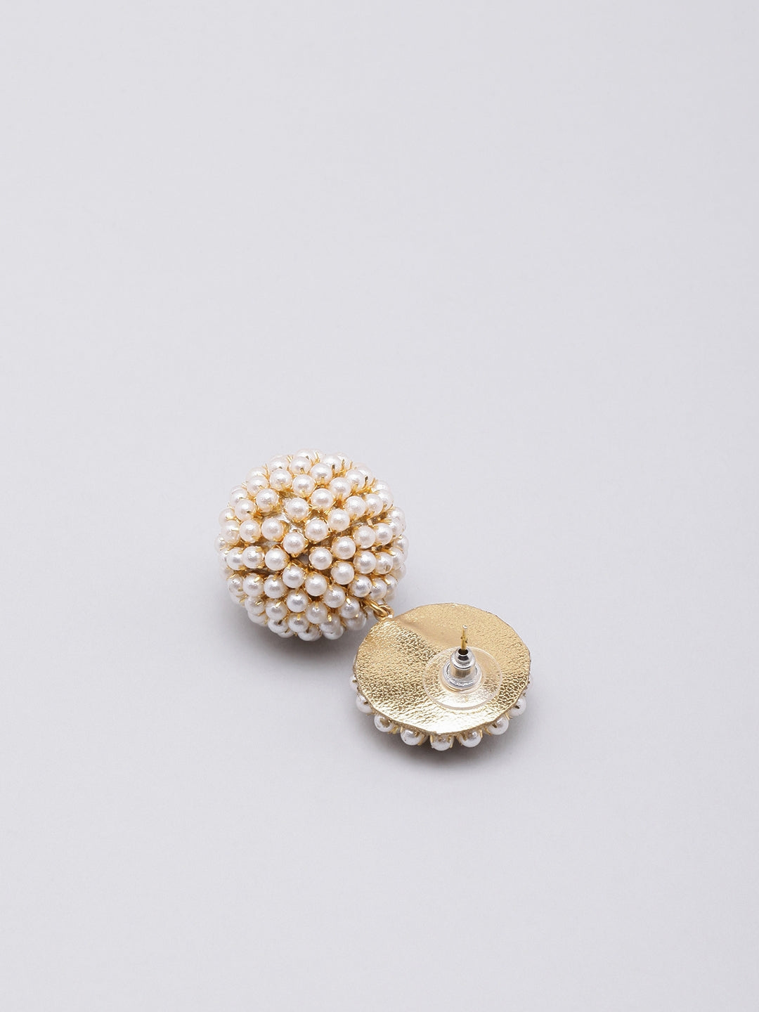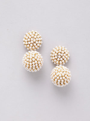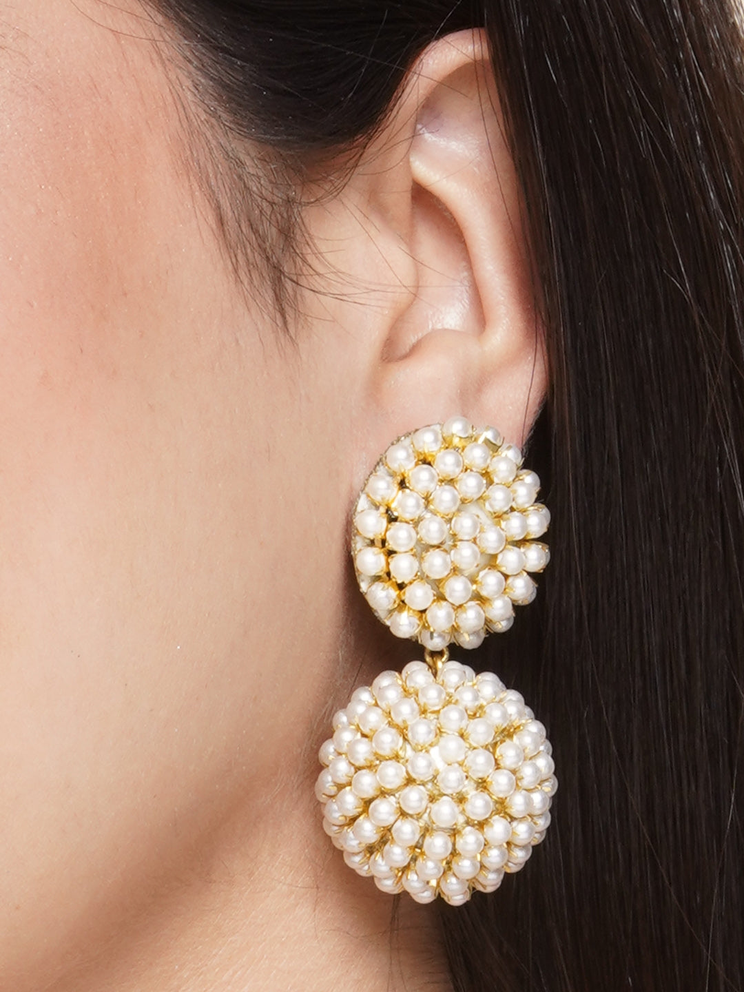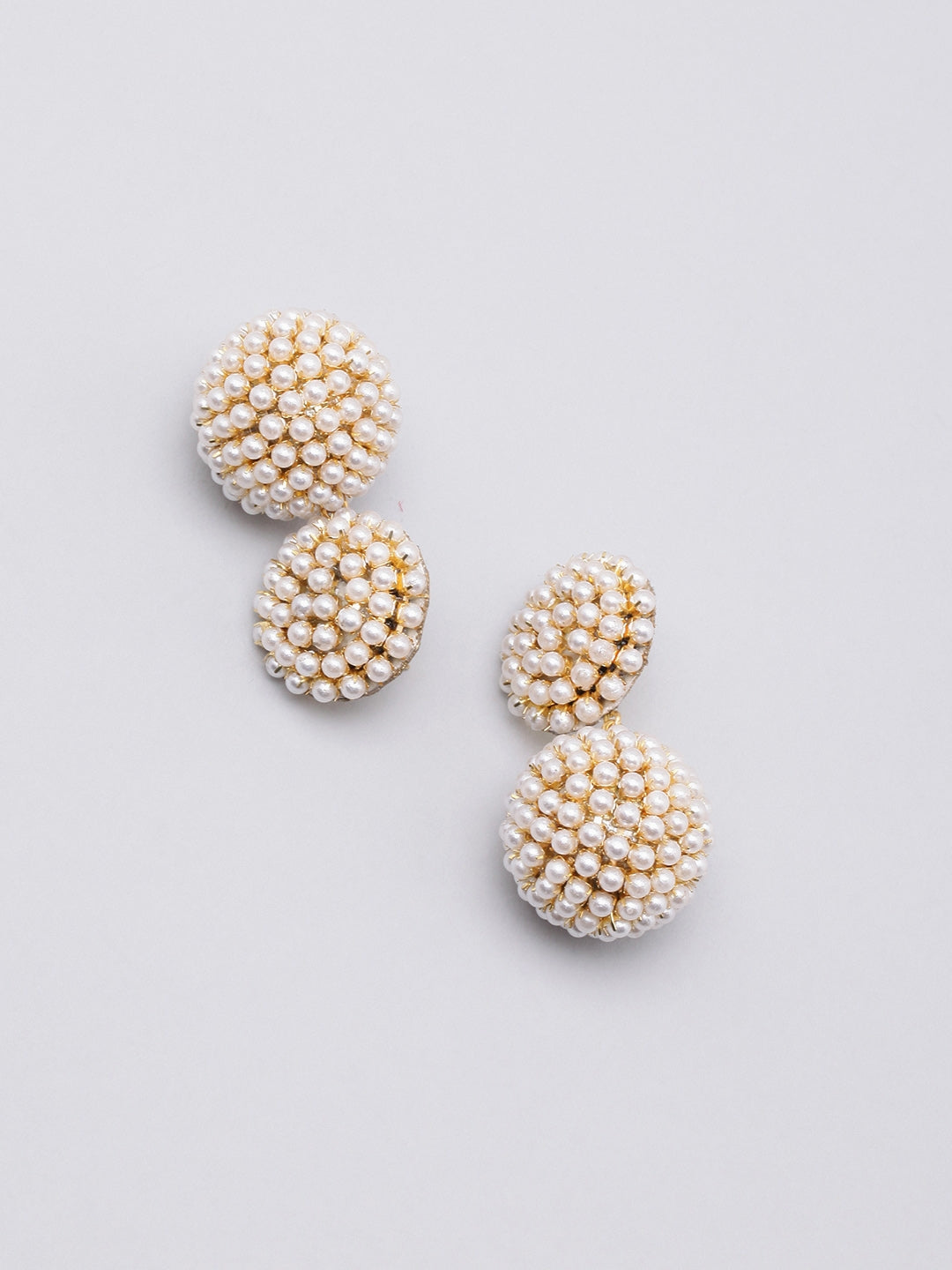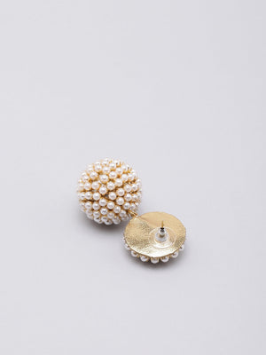 Gold-Plated White Pearl Studded Circular Drop Earrings